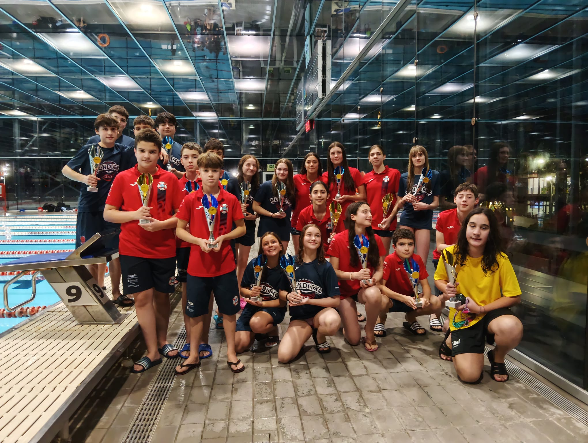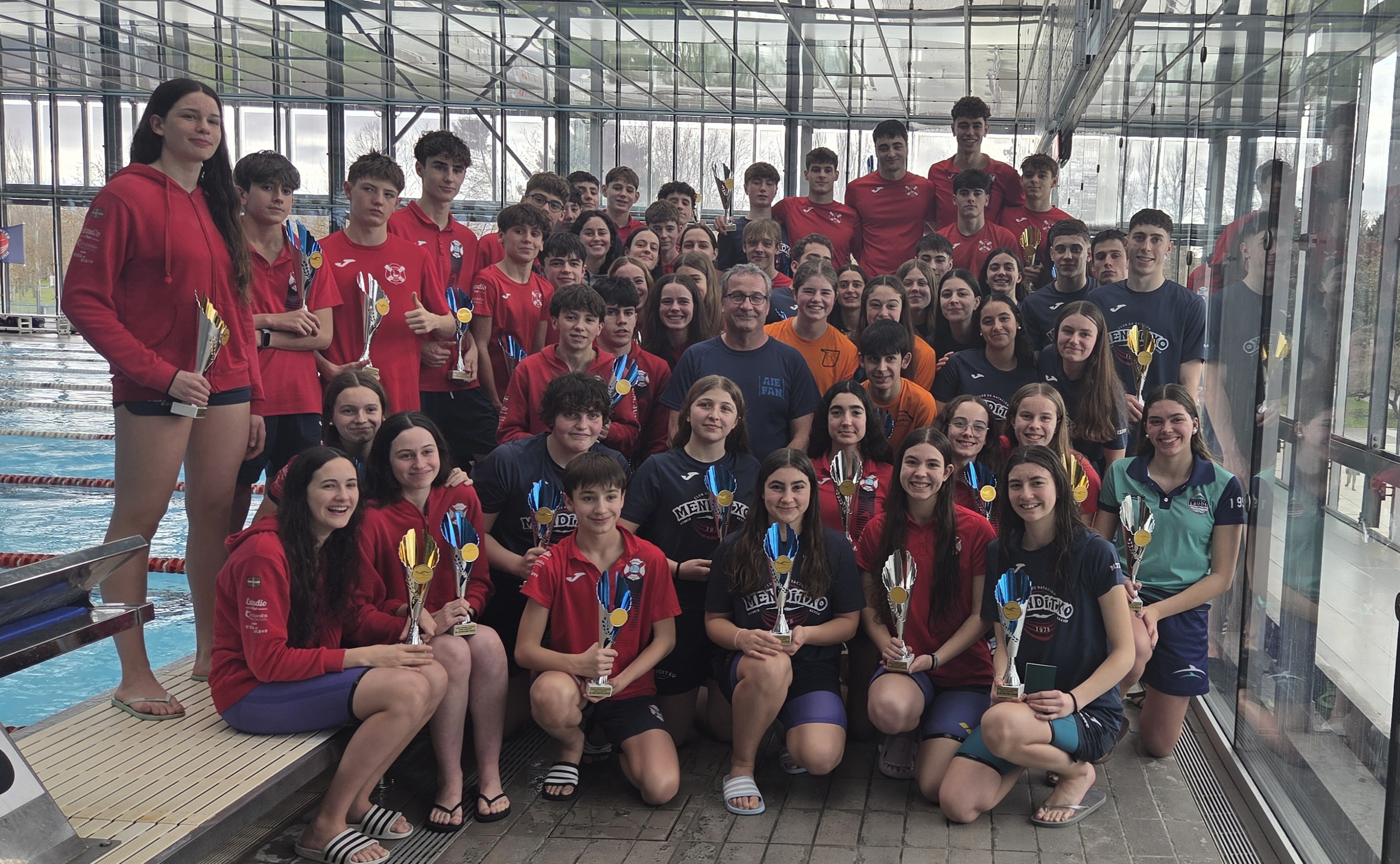 El CN Menditxo logró un total de 12 medallas, todas a cargo de su equipo femenino: 3 oros, 5 platas y 4 bronces, destacando las preciadas medallas de los relevos a cargo de Eider Fernández, Iris Lizarduy, Nayra Ortega e Izaro Ruiz, que consiguieron el bronce en el 4 x 100m Libre (4:22.02) y un disputado oro en 4 x 100m Estilos (4:52.19).
